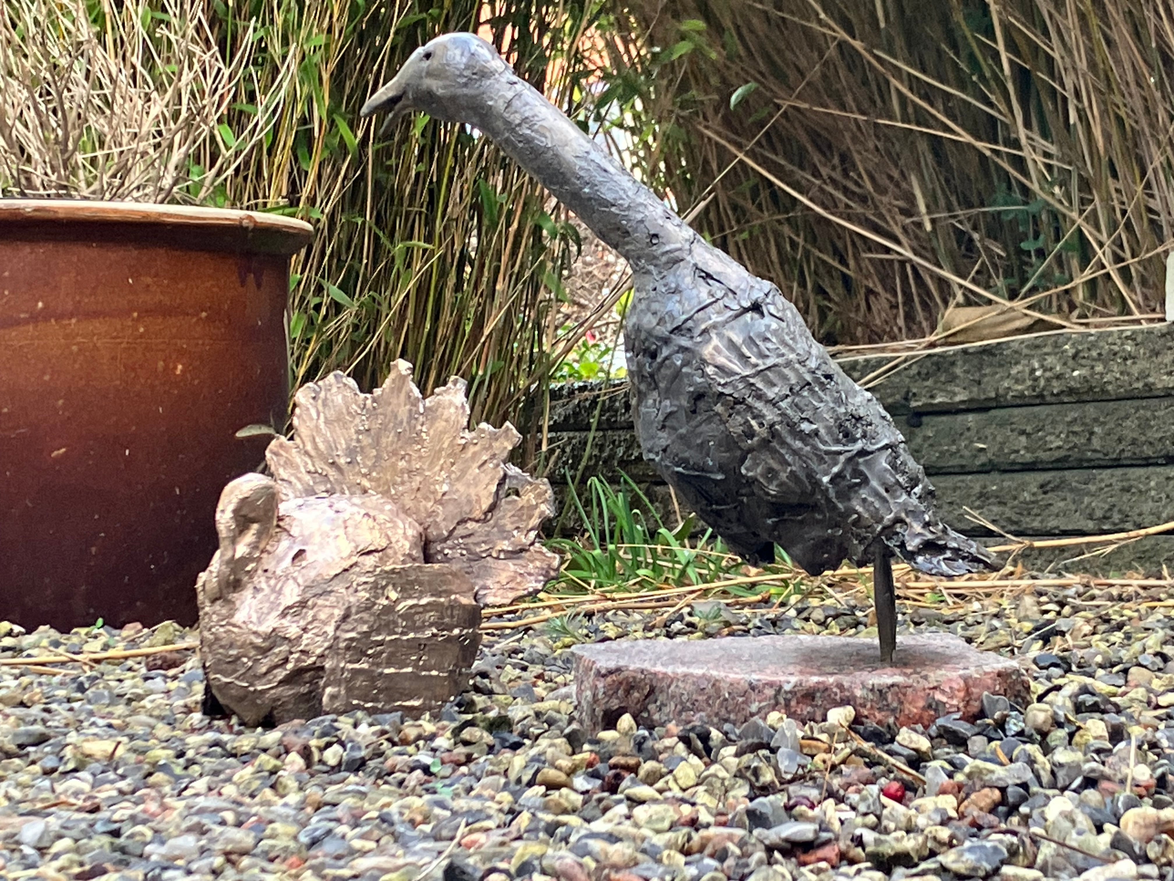 Lunder, lappedykkere, svaner. Bronze , 25 x 6 cm