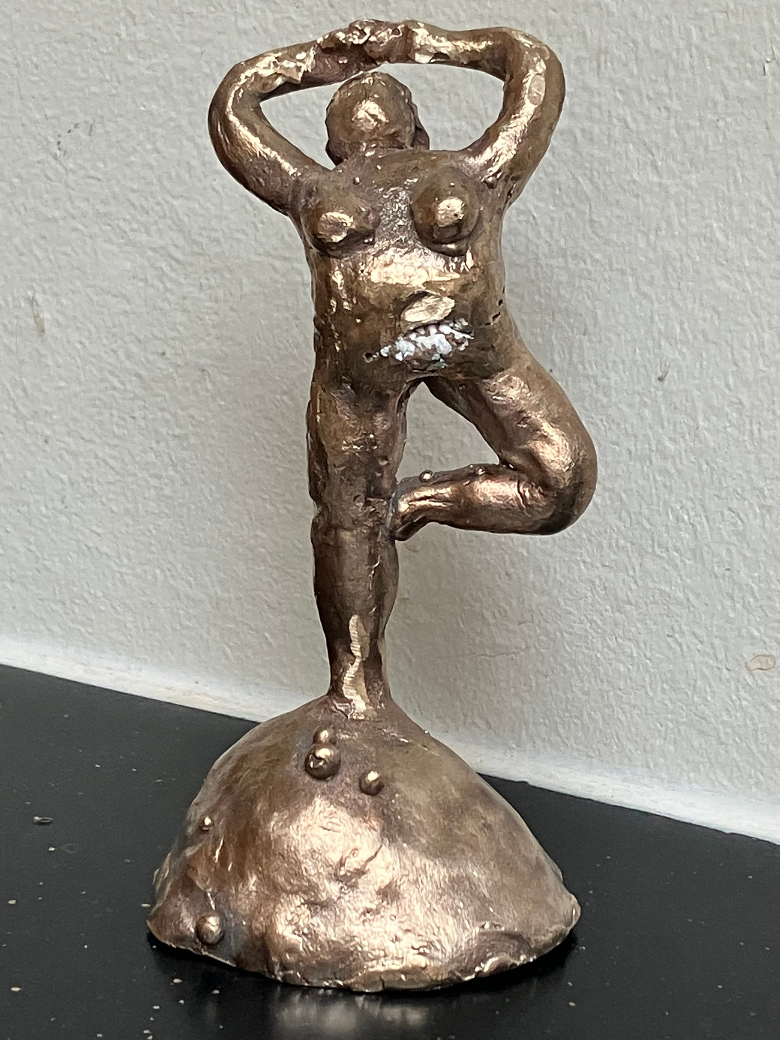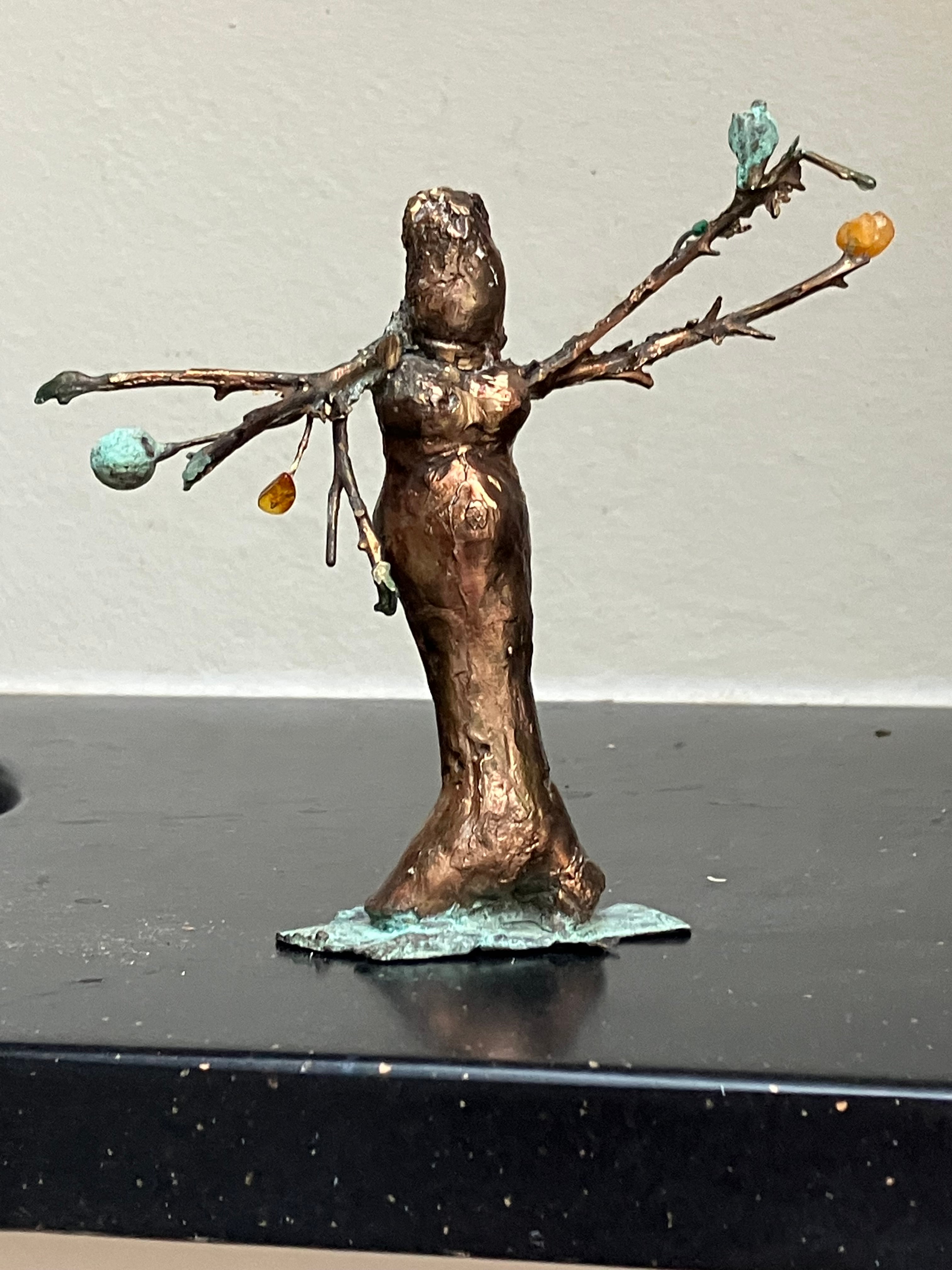 Dametræ, bronze med perler, 12 x 14 cm, 800 kr